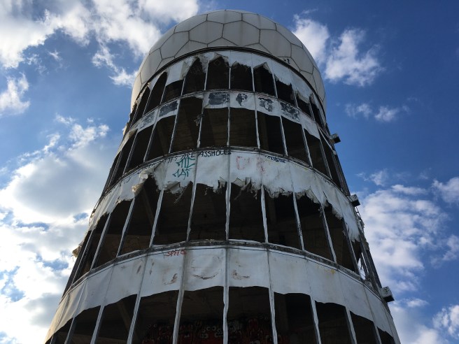 Da wollten wir schon lange hin. Im Casino der ehemaligen Flugüberwachungs- und Abhörstation der US-amerikanischen Streitkräfte auf dem Berliner Teufelsberg findet eine temporäre Kunstausstellung statt, die keiner besonderen Erwähnung wert ist. Aber das Gelände lohnt jederzeit einen Besuch. Der Teufelsberg wurde aus Trümmern aufgeschichtet und ist die zweithöchste Erhebung der Stadt, ein lost place, wie es inzwischen leider nicht mehr viele in Berlin gibt. Hier ist die Zeit stehengeblieben, überall sind kleine, teils witzige Installationen entstanden, Sprayer fanden dort ideale Bedingungen vor. Trotz 8 Euro Eintritt („Hier ist überall Kunst!“ meint der Kassierer) sind mehr Leute auf dem Gelände unterwegs, als wir erwartet haben. In Zeiten globaler Satellitenüberwachung und digitaler Kontrolle unserer Daten muten die Türme auf dem Teufelsberg anachronistisch an; trotzdem denke ich immer wieder an den Krieg in der Ukraine. Rom ist von Berlin weiter entfernt als Kiew.