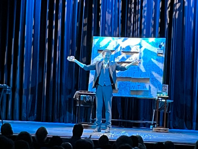 Nicht einmal der Mentalmagier & Hirnakrobat Harry Keaton weiß, wie Deutschland beim nächsten Mal wählen wird. Zuzutrauen wäre es ihm allemal. Bei seinem Auftritt im Neuen Theater Höchst begeistert und verblüfft er das vol besetzte Haus. “Brain Magic: Mein Gehirn und ich” heißt sein neues Solo-Programm, das gut zwei Stunden dauert und nicht eine Sekunde zu lang ist. Wie schafft es dieses Superhirn, das Buch ”Die Zahl Pi mit 10.000 Nachkommastellen” auswendig zu können und die genaue Stelle etwa eines Geburtsdatums zu nennen. Das hat mich schon vor Jahren fasziniert und beeindruckt wie seine neue Show, die kurzweilig zwischen Close-Up-Magie, Gedächtnisakrobatik und Nummern mit dem Publikum wechselt; natürlich ist sein in Las Vegas ausgezeichneter Kaktus-Trick im aktuellen Programm. Dass der promovierte Germanist am Ende aus den Buchstaben von vier Zufallsworten aus dem Publikum einen sinnvollen Satz formt, versteht sich von selbst. “DU bist magisch”, schrieb ich dem Hirnakrobaten nach der Vorstellung begeistert. Harry at his Best! Gerne wieder.